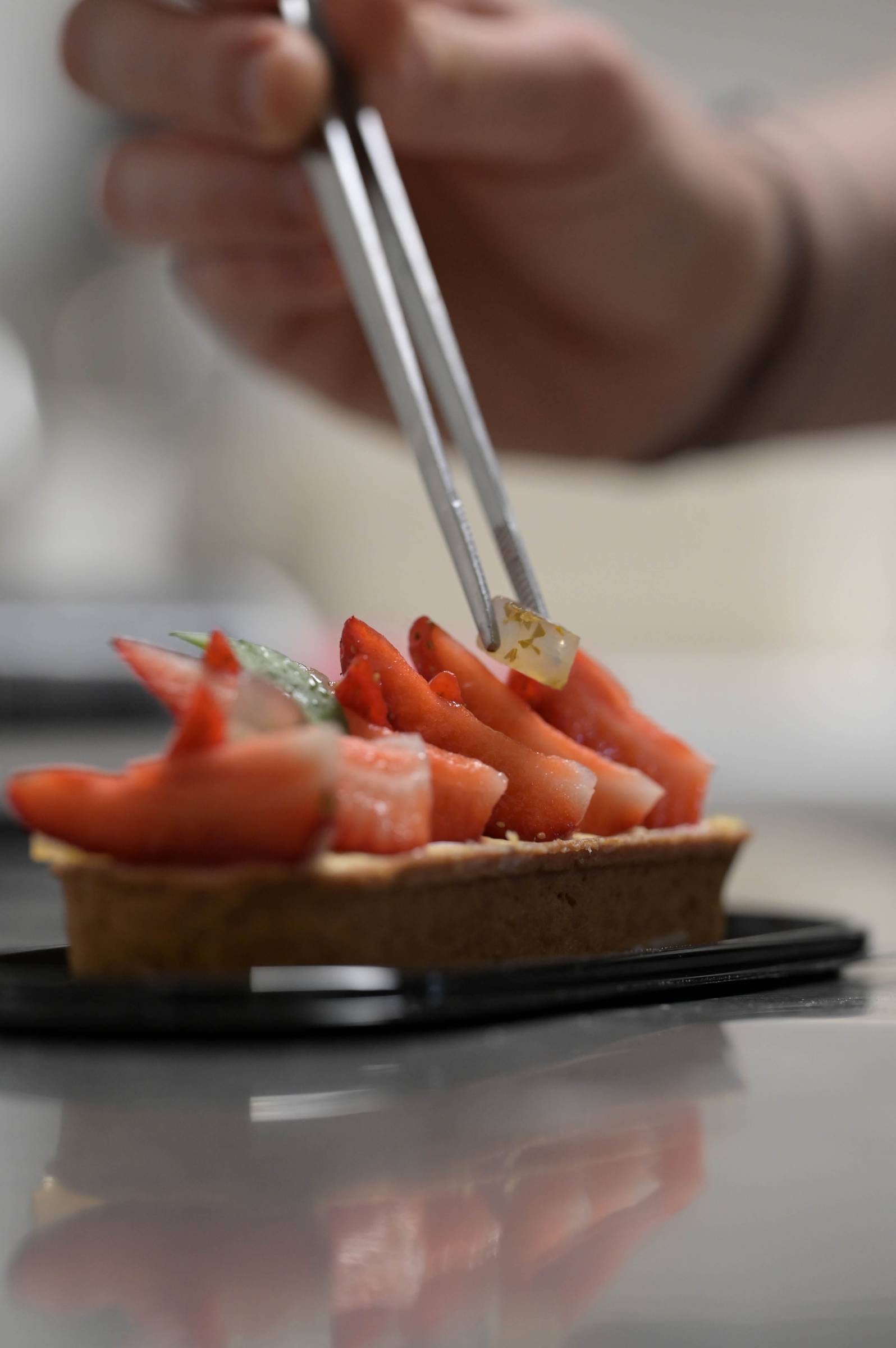 Entremet glacé aux fruits rouges et crémeux à la pistache.