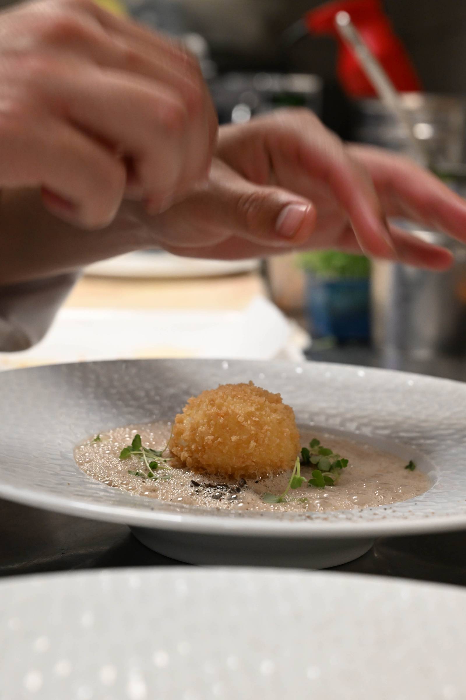 Ravioles maison aux Cèpes et parmigiano regain. Cappuccino vaporeux aux champignons.